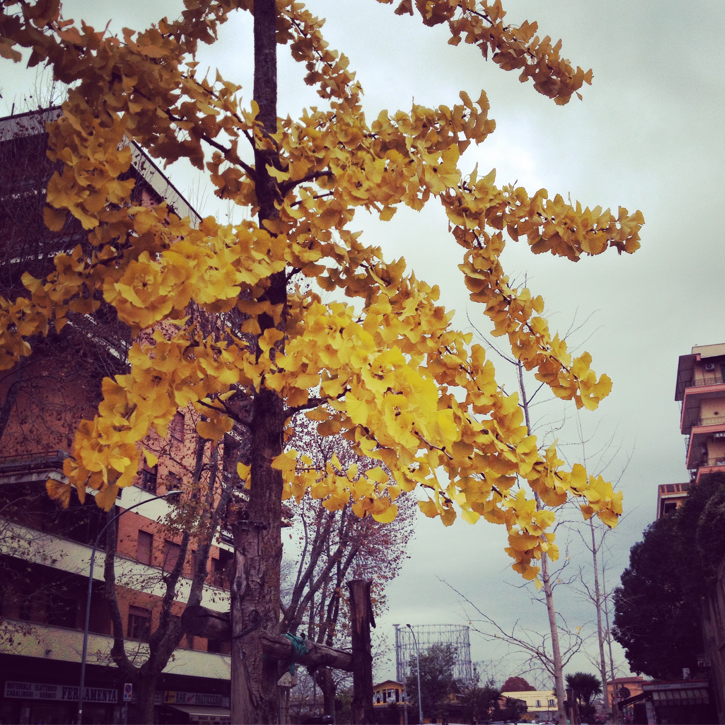 Concludo con una poesia ed una foto, scattata in un mattino grigio in una strada del mio quartiere a sua volta decisamente grigia, quando uno sprazzo di luce d’oro ha catturato la mia attenzione, inducendomi a fermarmi un attimo e a godermi quella vista bella ed inaspettata. Quanto alla poesia -quella da cui è tratto il verso prima citato- resto in un silenzio pieno e grato.